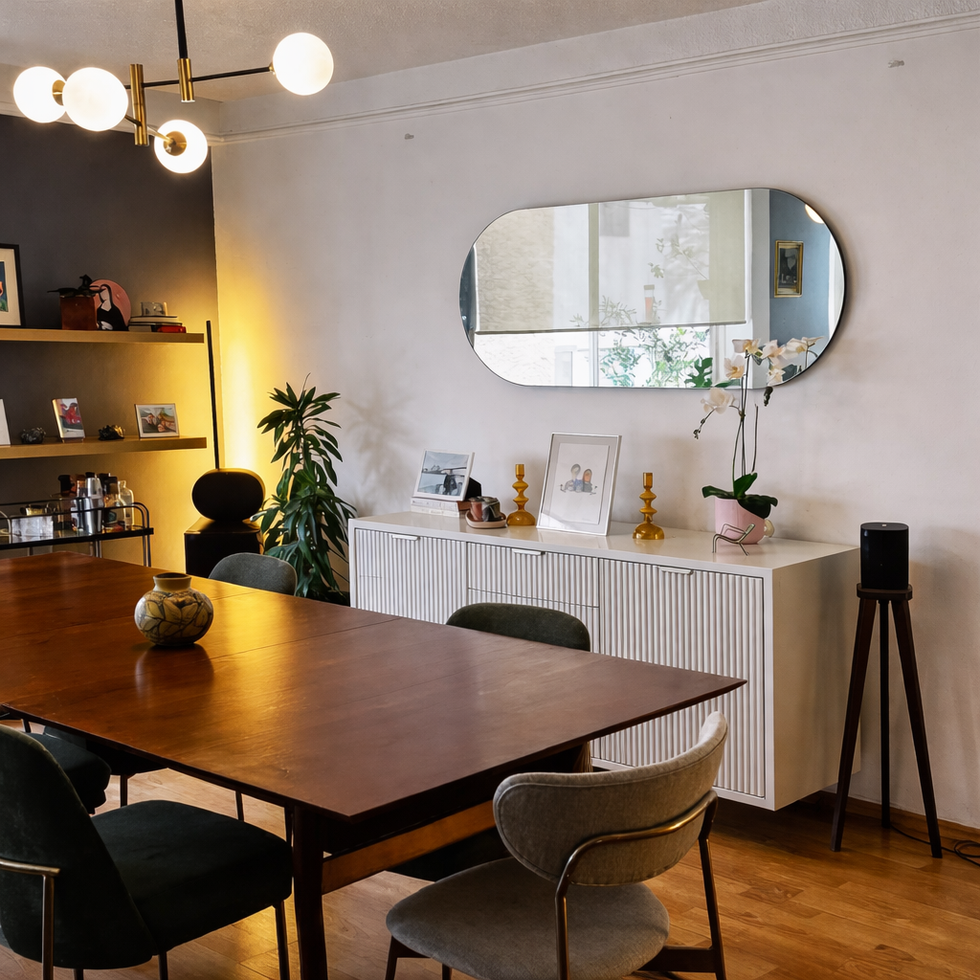 Espejo tipo píldora horizontal clásico flotado.
