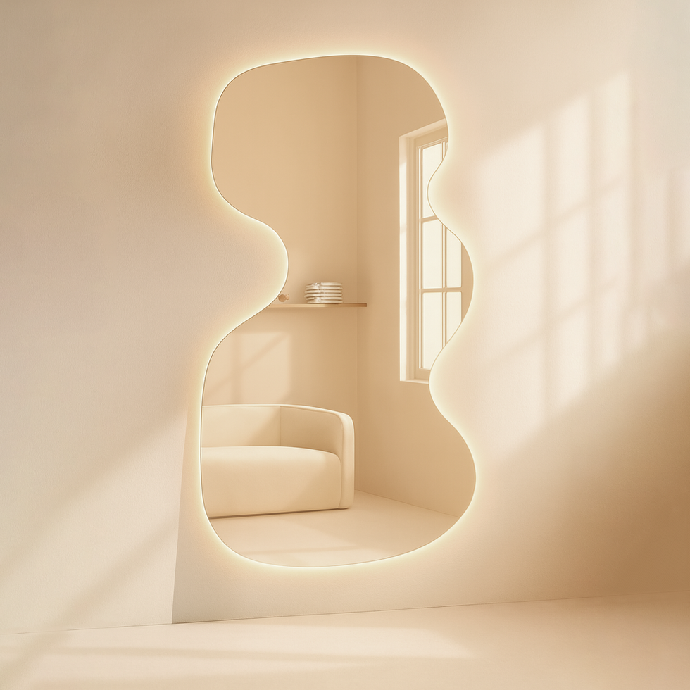 Espejo irregular vertical flotado.
